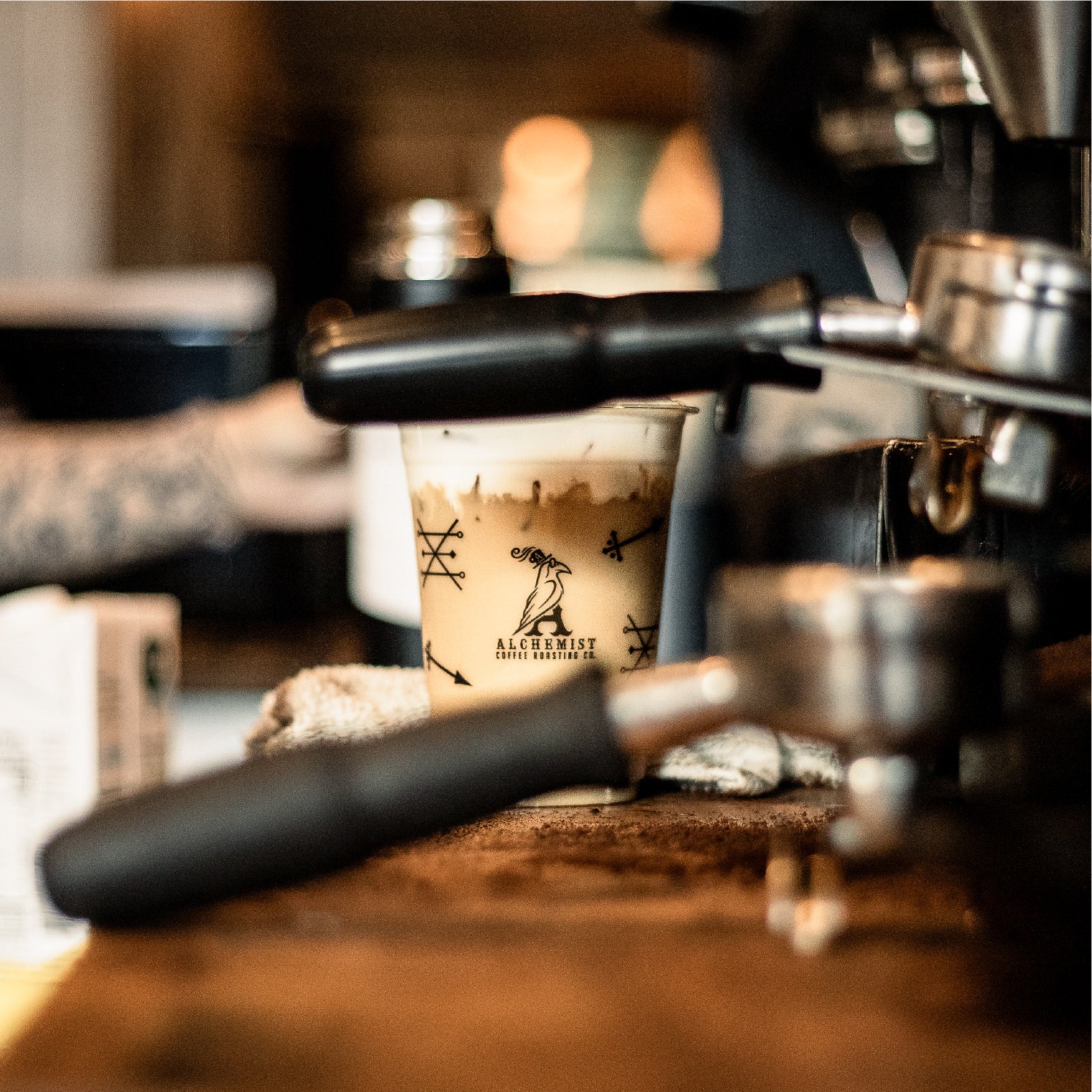 Alchemist Coffee Roasters stands for innovation. We craft the majority of our products in-house, from brewing chai, cold brew, and kombucha to roasting unique coffee blends, hand-blending teas, creating breakfast foods, and developing our own coffee syrups. Our focus is on inventing exciting craft products rooted in quality and health-conscious choices.